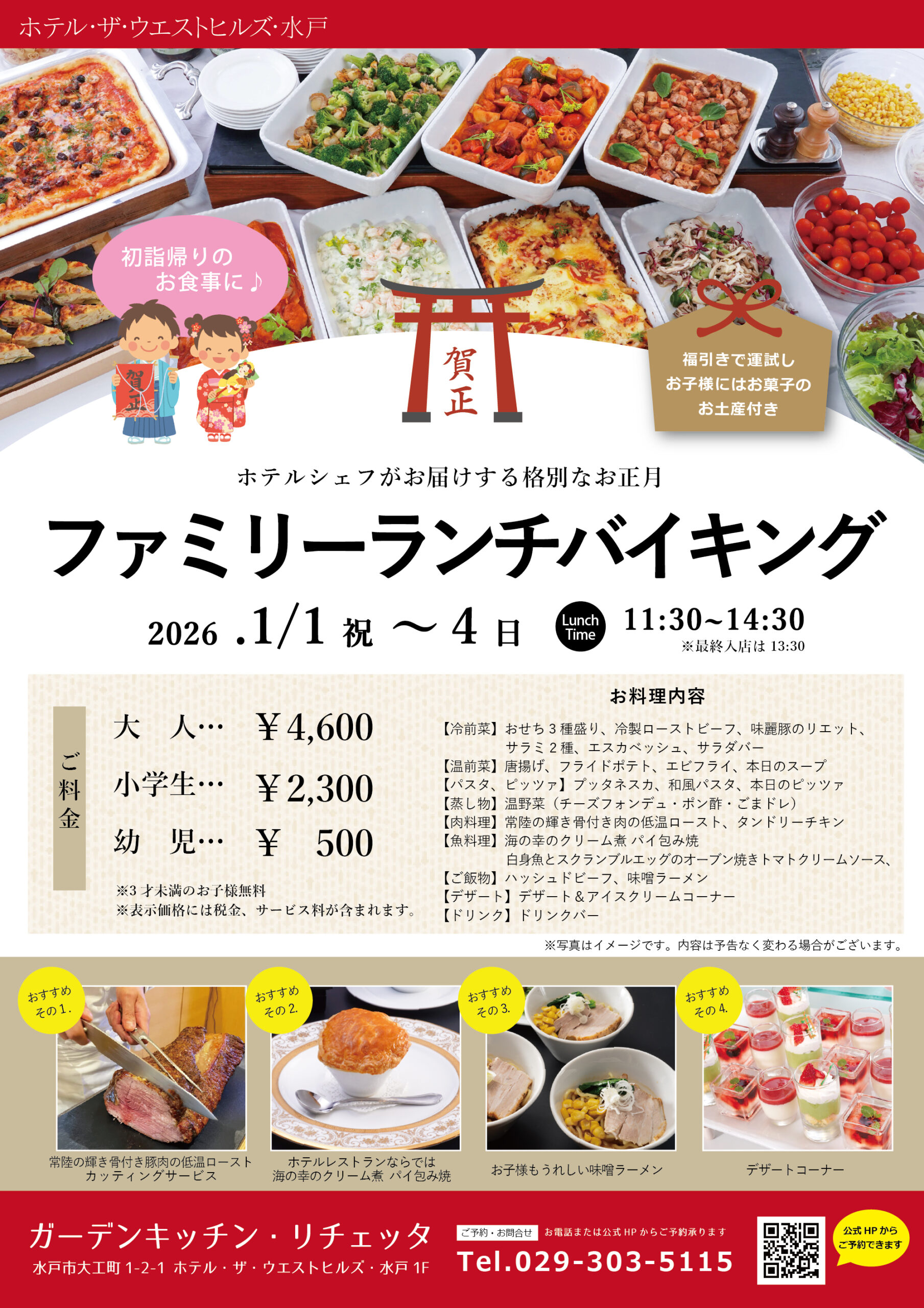 お正月のご家族揃ってのお食事会なら、ホテルシェフがご用意する格別のランチバイキングはいかがでしょう