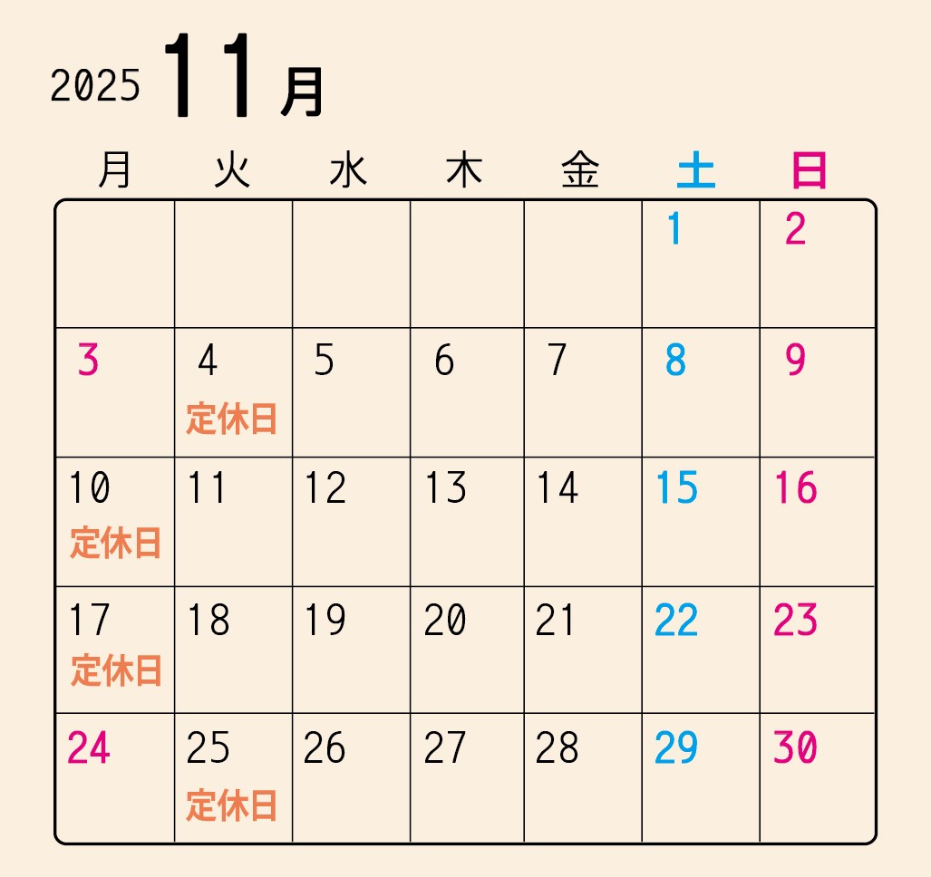 11/4 (火) 、10 (月) 17 (月) 、25 (火)