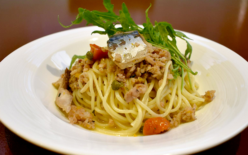 A. 秋サバと魚介のラグー・ビアンコ スパゲッティーニ