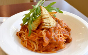 B. 新玉ねぎと鶏のトマトソース ジェノヴェーゼ添えスパゲッティーニ【3/1(日)~3/15(日)】